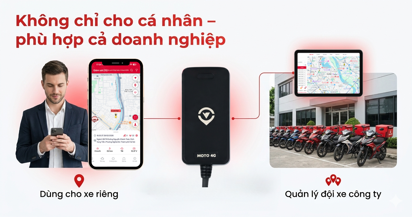 VGPS MOTO 4G được thiết kế để đáp ứng từ nhu cầu chống trộm, theo dõi hành trình cá nhân đến quản lý đội xe, kiểm soát chi phí và vận hành chuyên nghiệp cho doanh nghiệp.